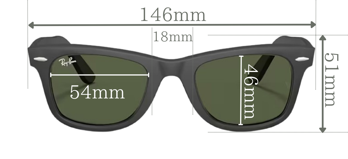 レイバンのウェイファーラー(RB2140F:アジアンフィットモデル)には、52と54の2つのサイズ展開があります。